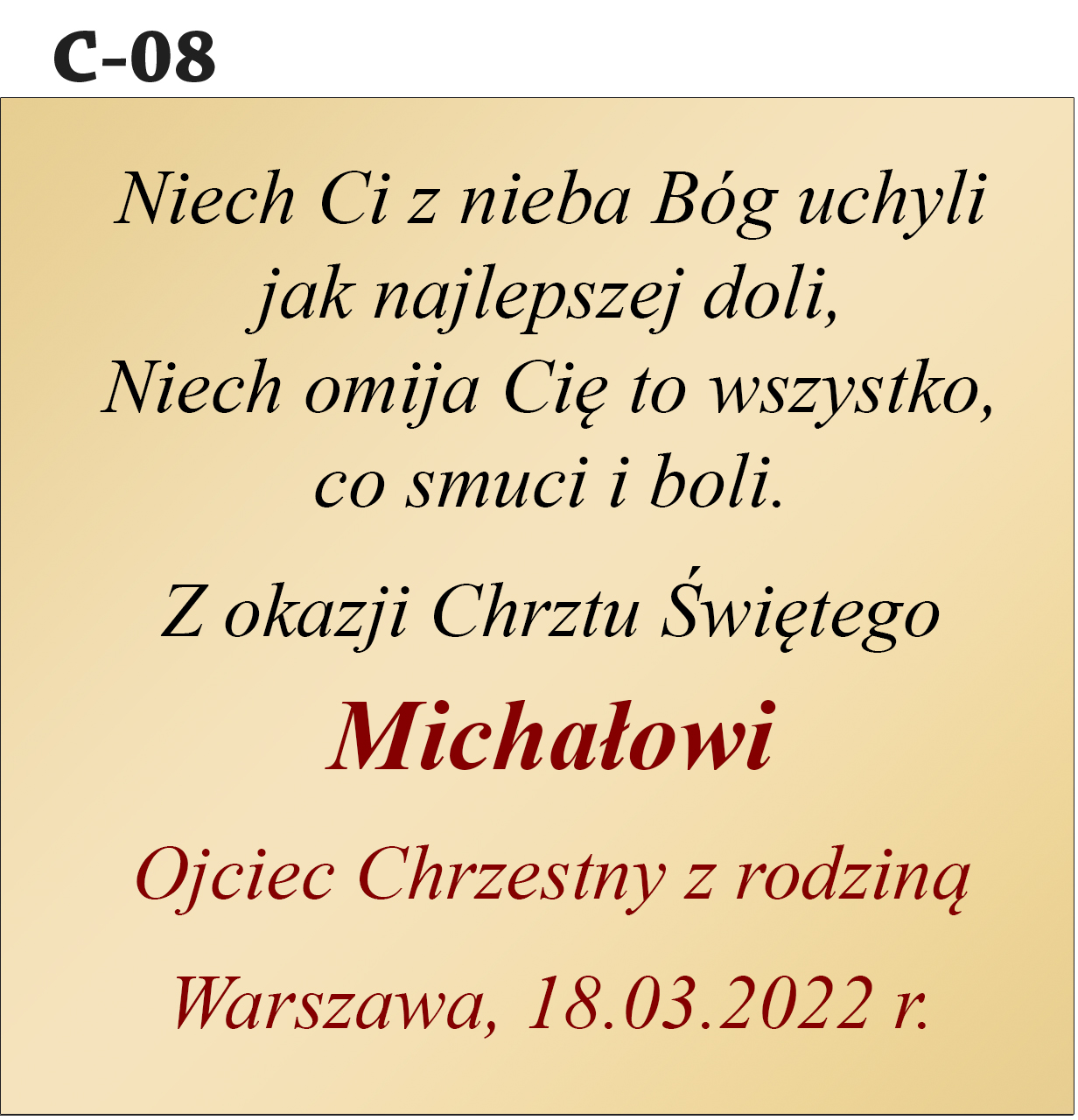 Personalizacja: Grawerowana blaszka aluminiowa na froncie