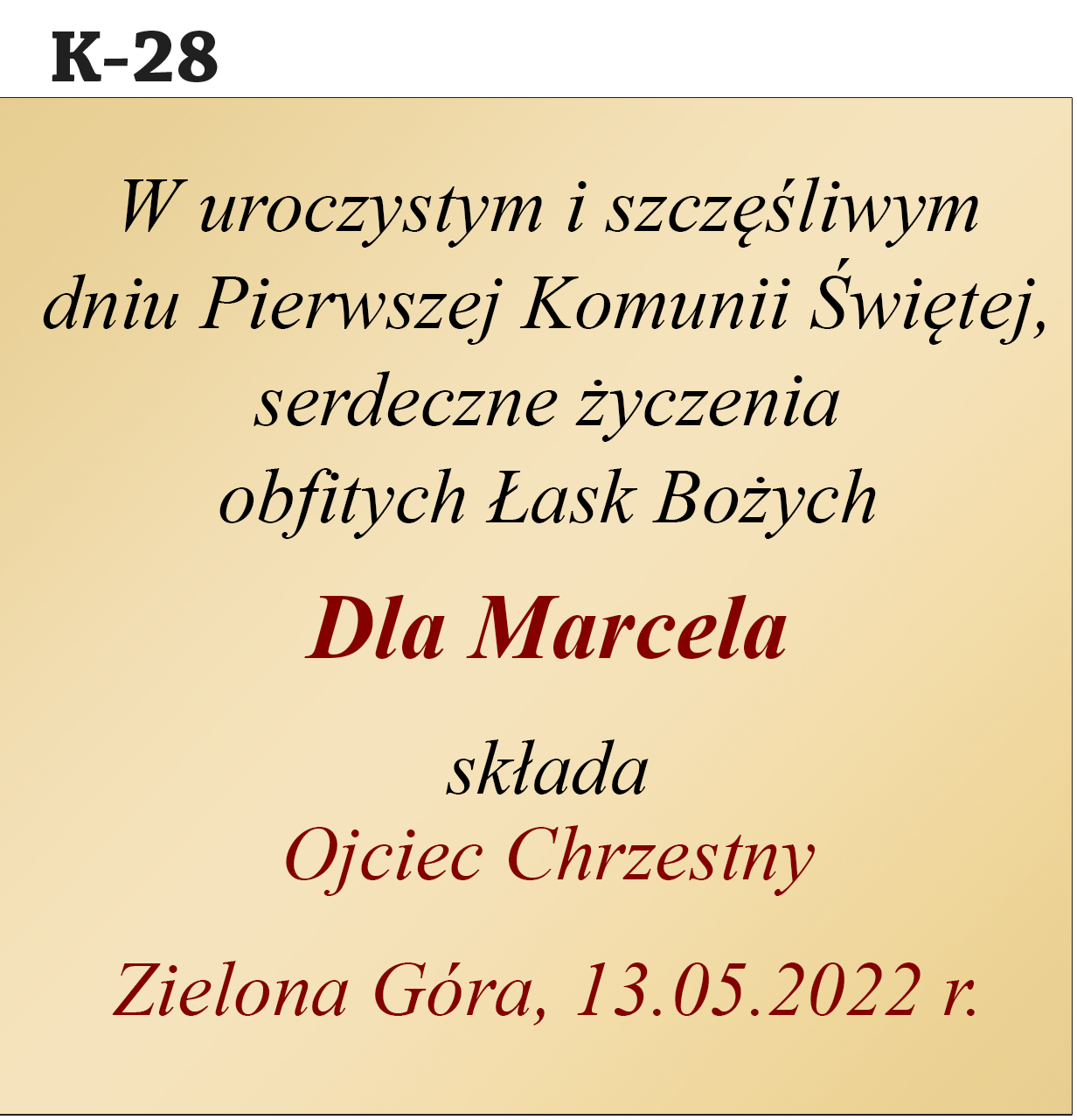 Jak zamówić personalizację? Abyśmy mogli przygotować Twój wyjątkowy prezent, w polu "Personalizacja" podaj treść dedykacji (nr wzoru, imię dziecka, od kogo jest prezent, data uroczystości).