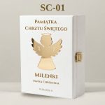 • Wierzch pudełka: Imię dziecka, data oraz informacja, od kogo jest prezent (np. "Od Ojca Chrzestnego").