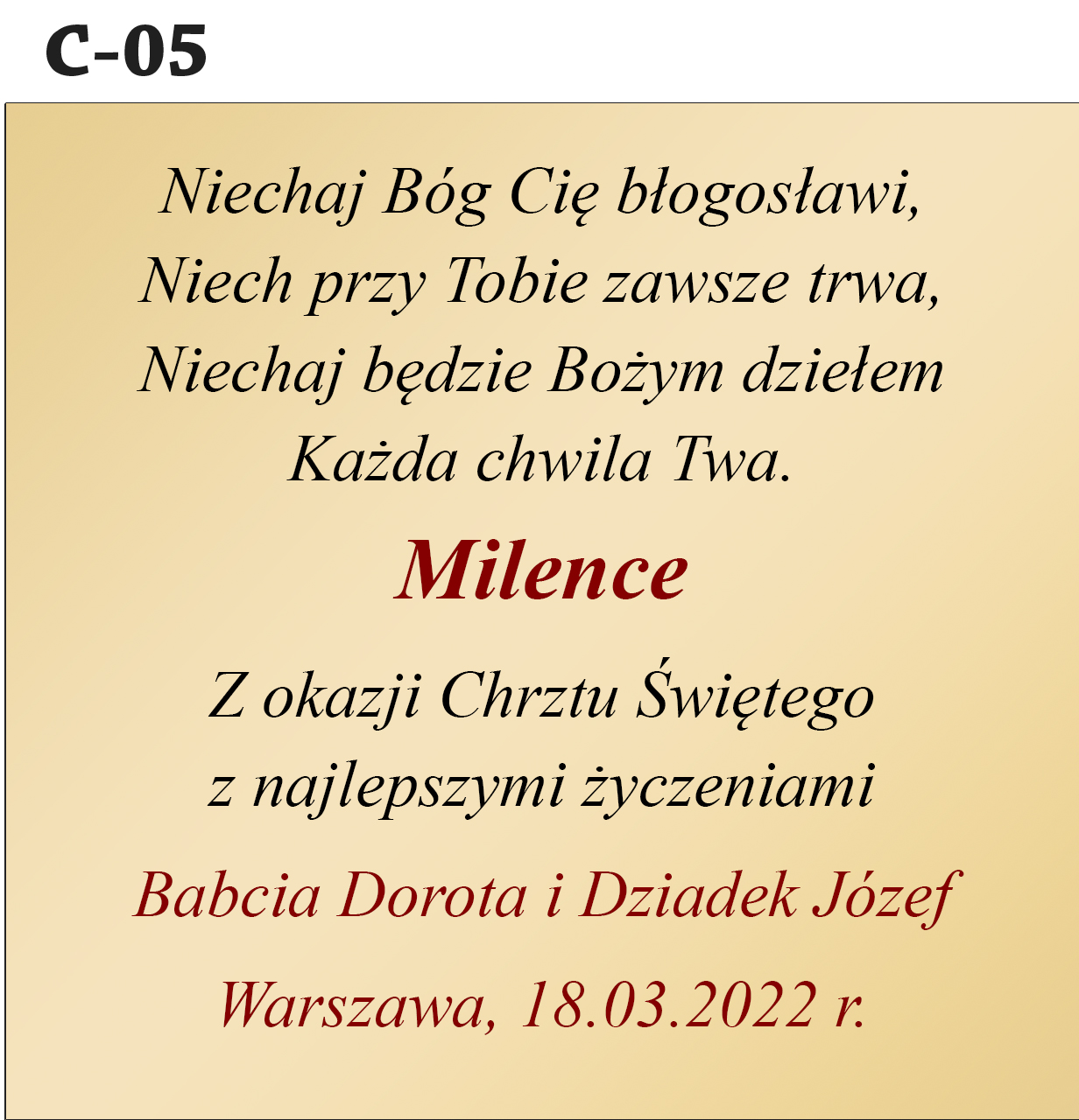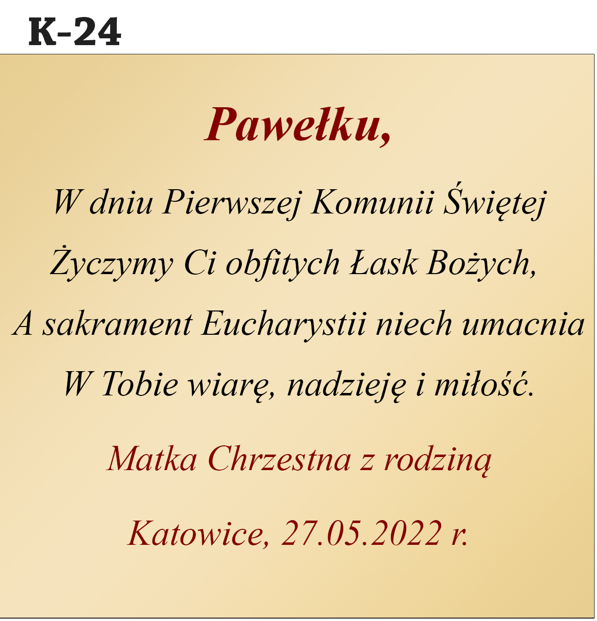 • Przeznaczenie: Chrzest Święty, Pierwsza Komunia Święta