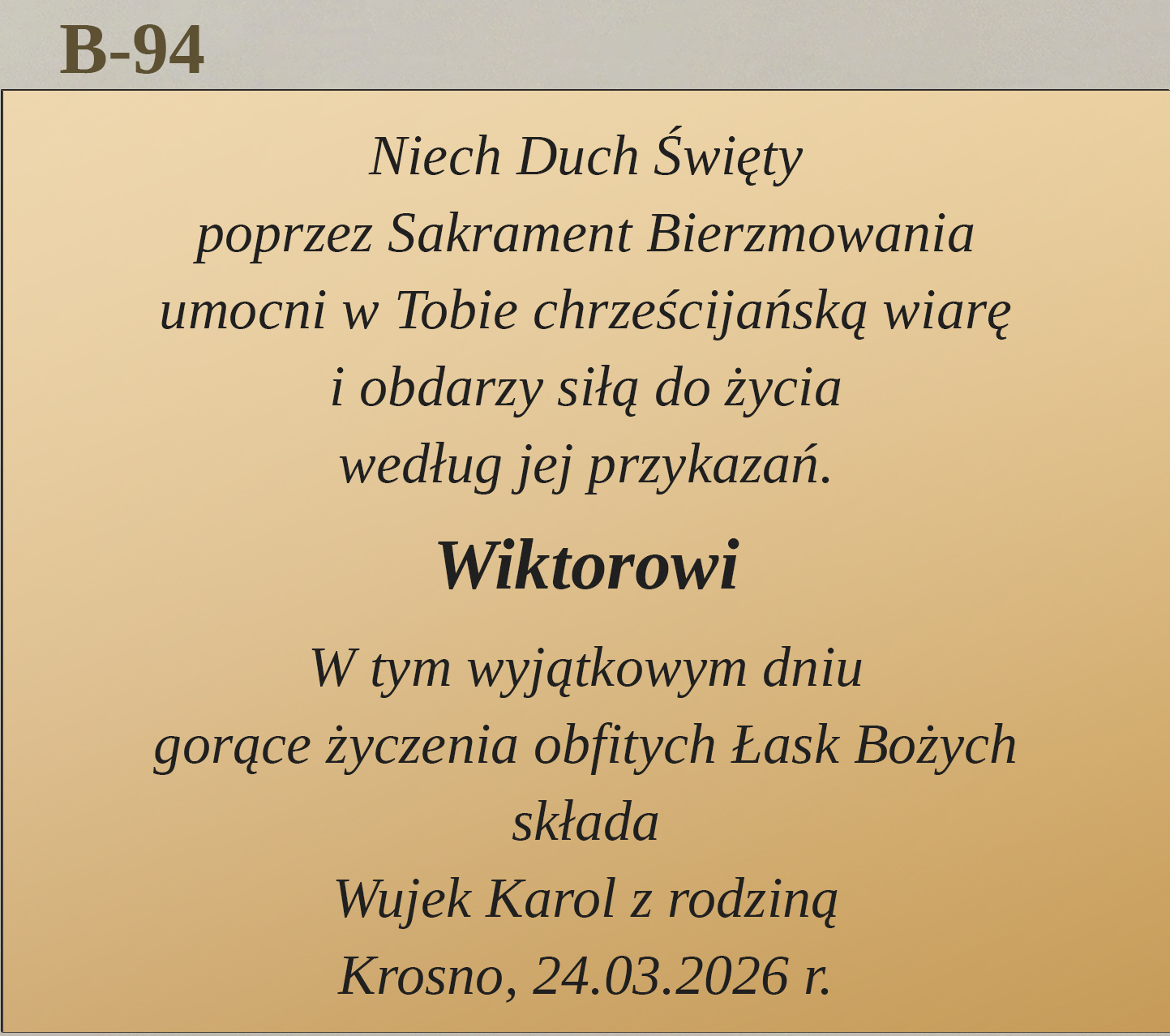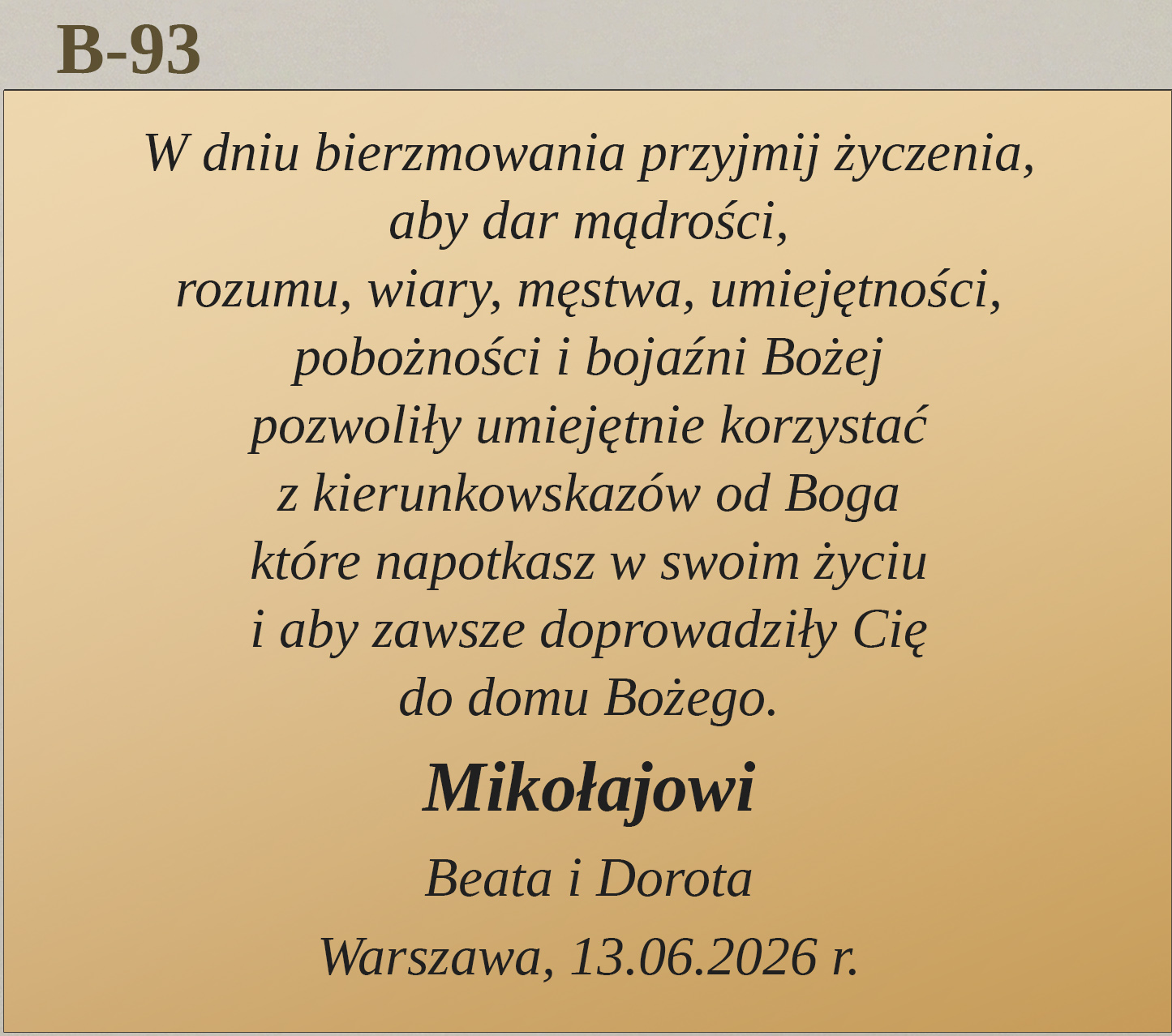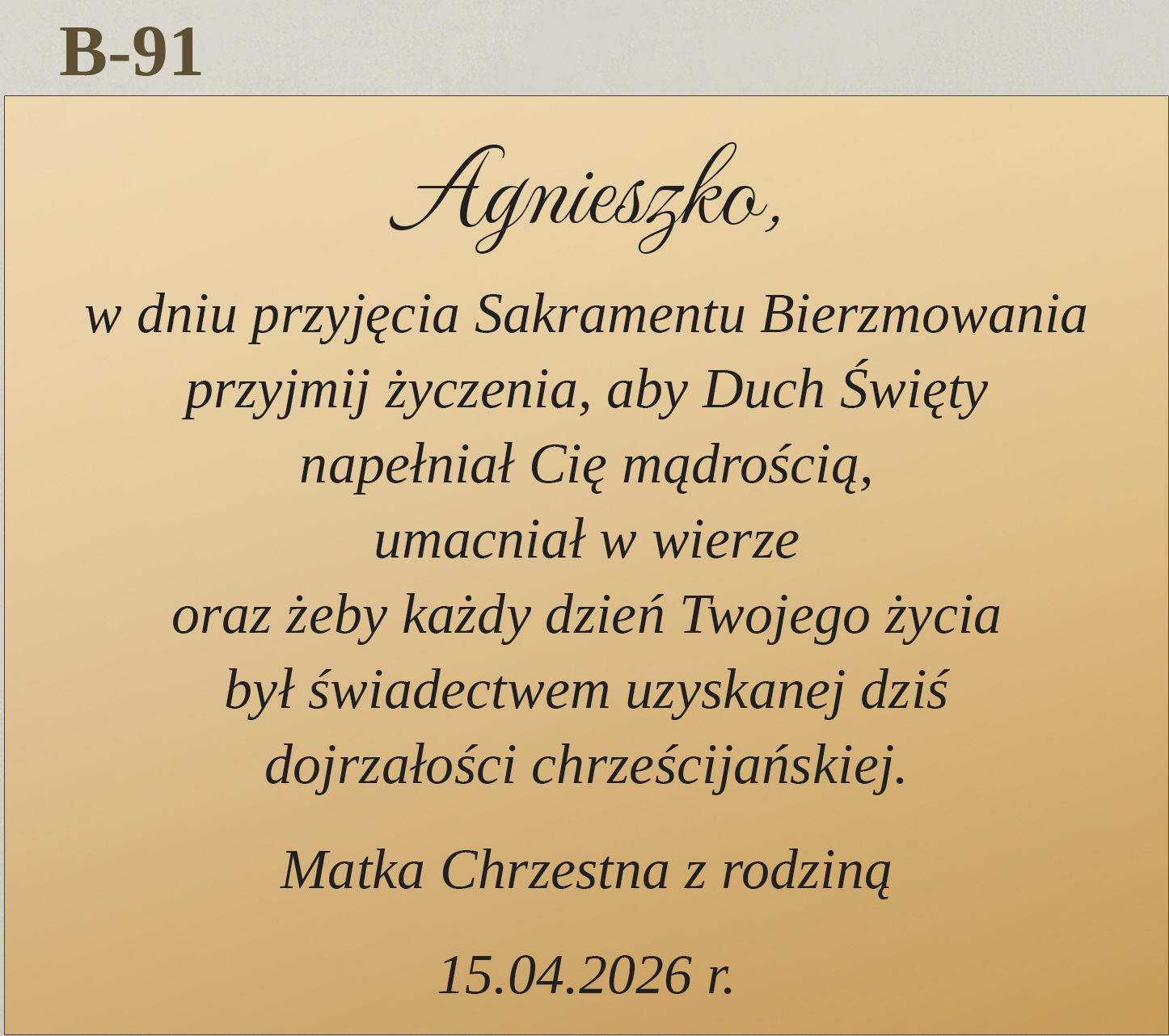 Dane do personalizacji umieść w polu: "Personalizacja", wg wzoru: B-92 / Marlenie / Matka Chrzestna / Kraków, 28.05.2025 r.
