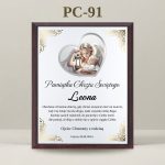 Każdy egzemplarz jest unikatowy dzięki możliwości personalizacji. Na eleganckiej, srebrnej blaszce aluminiowej w tle z delikatnymi ornamentami umieszczamy: